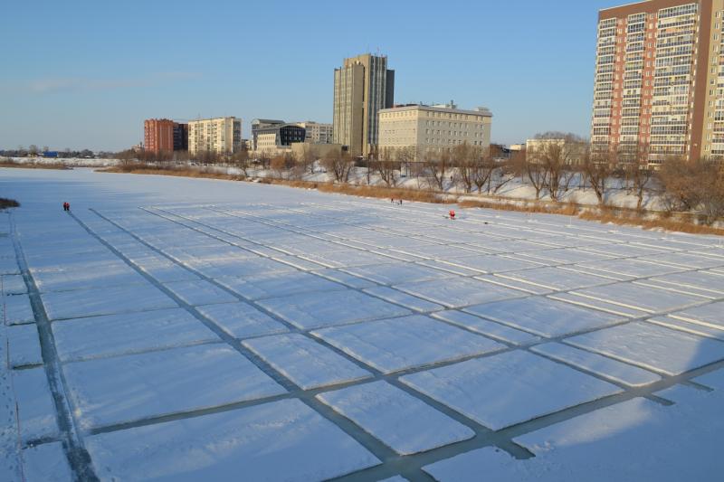 Третьего марта специалисты «Водного Союза» распилят лед на р.Тобол в районе курганского гидроузла (у ЦУМа), а пятого марта – у Кировского моста. Сегодня, 26 февраля, с помощью снегохода на ледовое поле наносится разметка. По этим дорожкам через неделю пойдут сани с установленными на них бензопилами, которые разрежут лед на квадраты для безопасного прохождения по реке в период весеннего половодья. Глубина распиловки составит 70% от толщины льда.